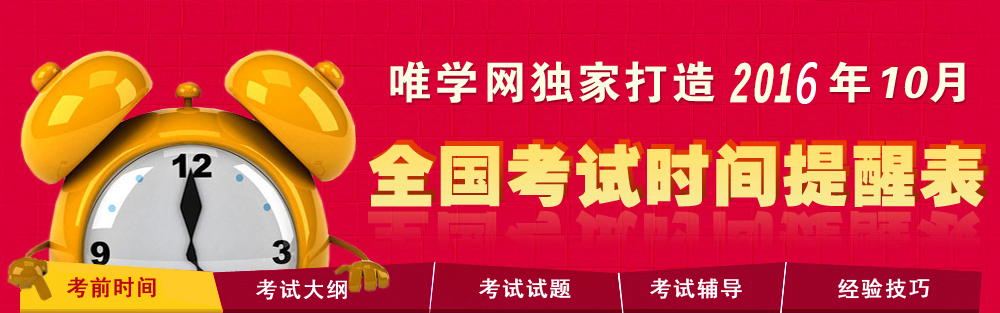 2016年10月29日-30日 | 成人高考 | * 注:唯学网提供的各项考试时间仅供参考,如与官方时间有出入,以官方考试时间为准,欢迎指正。 |